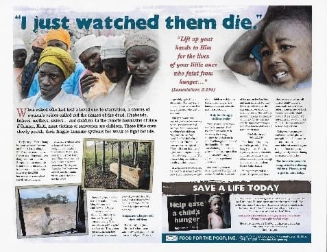 of the article was “I Just Watched Them Die.” These had been the words of a mother describing her anguish as she watched her 2 1/2-year-old twins starve to death. She had nothing to feed them. She just watched them die. The troubled area, Baie d’Orange, was in the southern mountains of Haiti. A hurricane in 2008 had destroyed their crops. It was followed by a drought and more than 40 people had died of starvation, mostly children. [Read the original article]