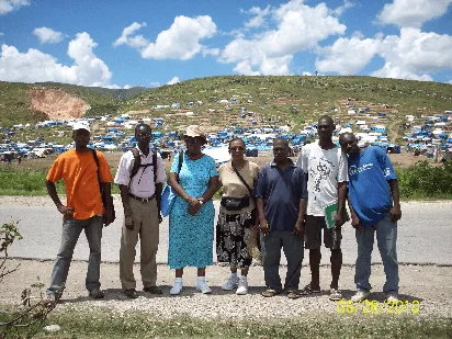 Grace Evangelistic Ministries. The backdrop of the photo is Titanyen, Haiti’s tent city for thousands of earthquake survivors. During this trip she met Pastor Wisny Exima who would become Hope for Caribbean Kids, Inc.’s representative in Haiti. He currently serves as the organization’s translator, trip planner, and oversight coordinator. Throughout the year he assists with three-way planning phone calls as Hope for Caribbean Kids, Inc. directs and funds projects for the children of Marre Blanche through the school director, Pastor Jean Thony Perime.